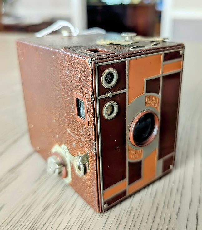 KODAK BEAU BROWNIE NO. 2 (1930-33) IN BROWN. Missing strap. A few small nicks. Really nice front. $95 plus Shipping. NJ Residents add 6.625% Sales Tax.